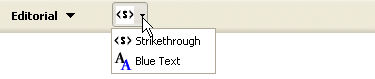 The following example builds a new category on the Insert bar called Editorial and then adds a pop-up menu to that category. The pop-up menu contains the Strikethrough object you already created and groups it with a Blue Text object you create. The objects in the Editorial category let users: