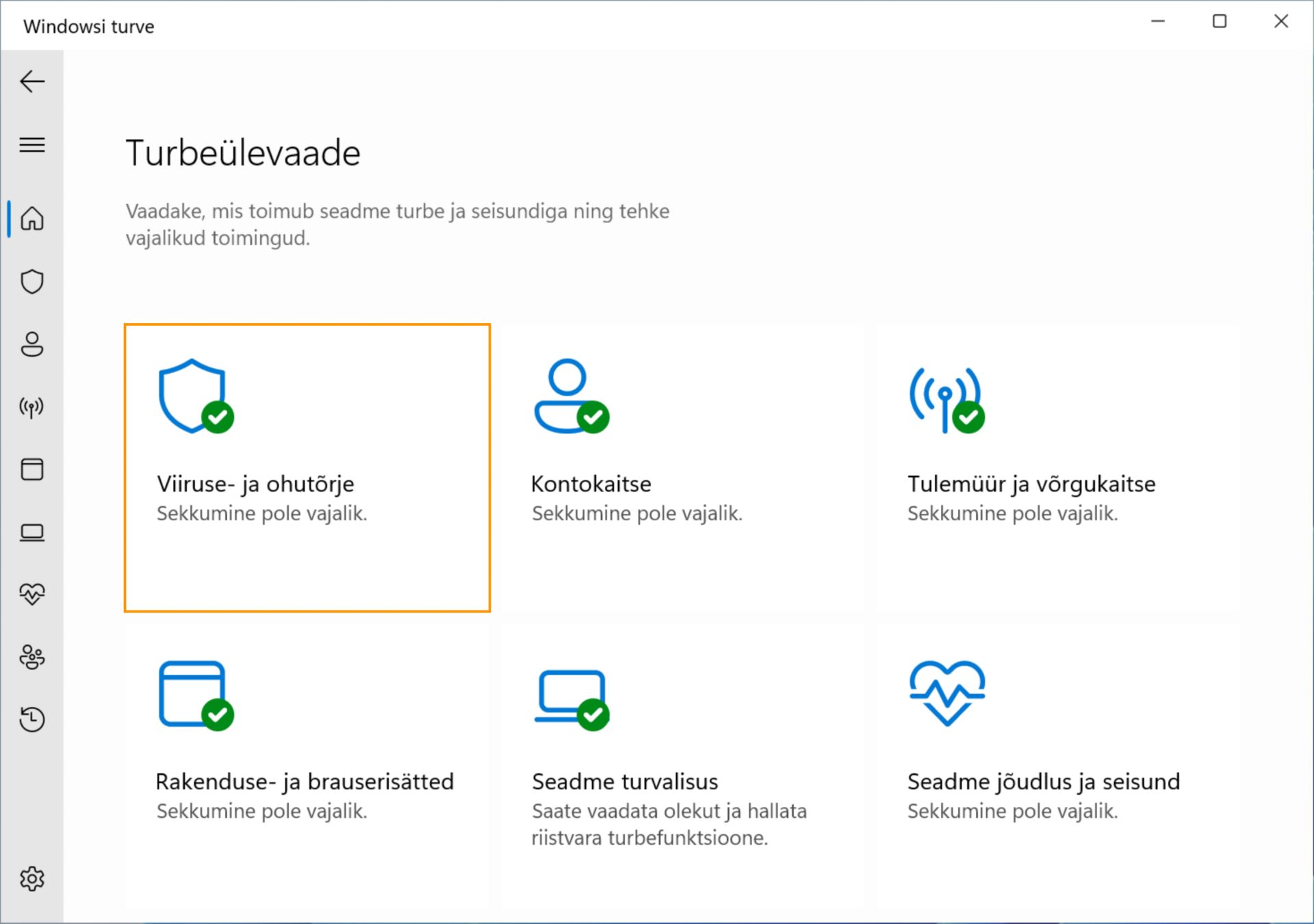 Võite valida ka Start > Sätted > Värskenda & turbe > Viiruse- ja ohutõrje.