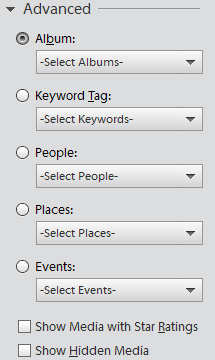 - Show Media with Star Ratings: Select this option to sort and view the media as per the start ratings given to a photo or video.
