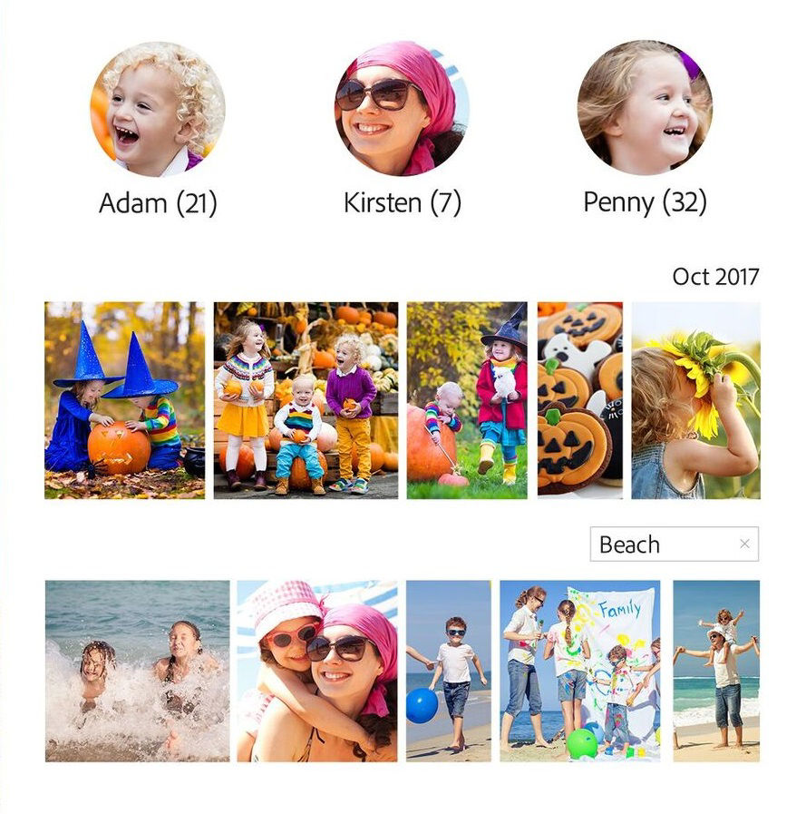 Elements Organizer offers Auto Creations that highlight memorable events like birthdays and vacations. Auto Creations are powered by Adobe Sensei AI technology and can range across photo collages, slideshows, video collages, and Candid Moments.