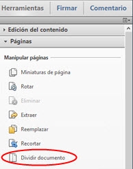 Elija Herramientas > Páginas > Dividir documento.