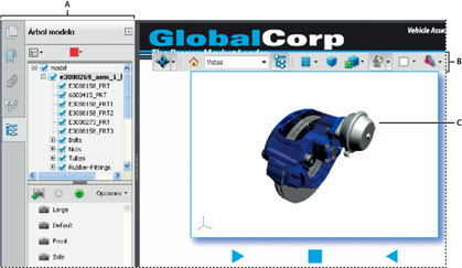 Determina si el Árbol modelo aparece cuando el modelo 3D está activado. Elija Usar configuración de Anotación para utilizar la configuración que el autor haya empleado al agregar el modelo 3D al archivo PDF.
