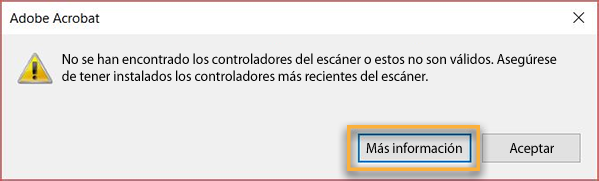 Se ha agregado la opción Más información en todos los mensajes de error relacionados con la digitalización. Al hacer clic en la opción, se le dirigirá a una página de ayuda para resolver el problema.