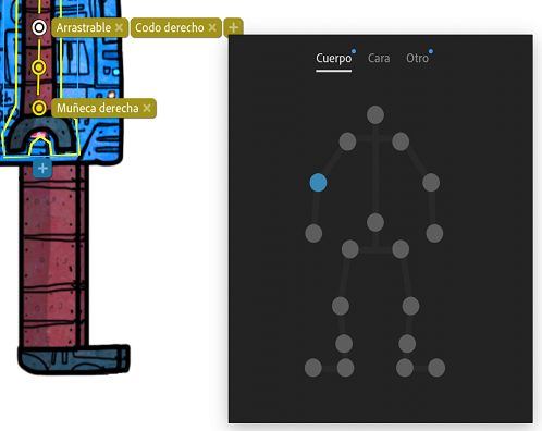 Etiquetas visuales para las capas y los controles de una marioneta