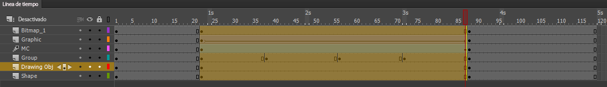 La cronología muestra el tiempo, en segundos, junto con los números de fotograma. Esta función permite convertir más rápido los fotogramas en tiempo, así como conocer el valor de fotogramas por segundo (FPS) que tiene configurado en todo el proceso de animación.