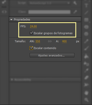 Al reproducir una animación, se muestra la velocidad de fotogramas real. Esta velocidad de fotogramas puede diferir de la velocidad de fotogramas del documento si el equipo no puede calcular y mostrar la animación con rapidez.
