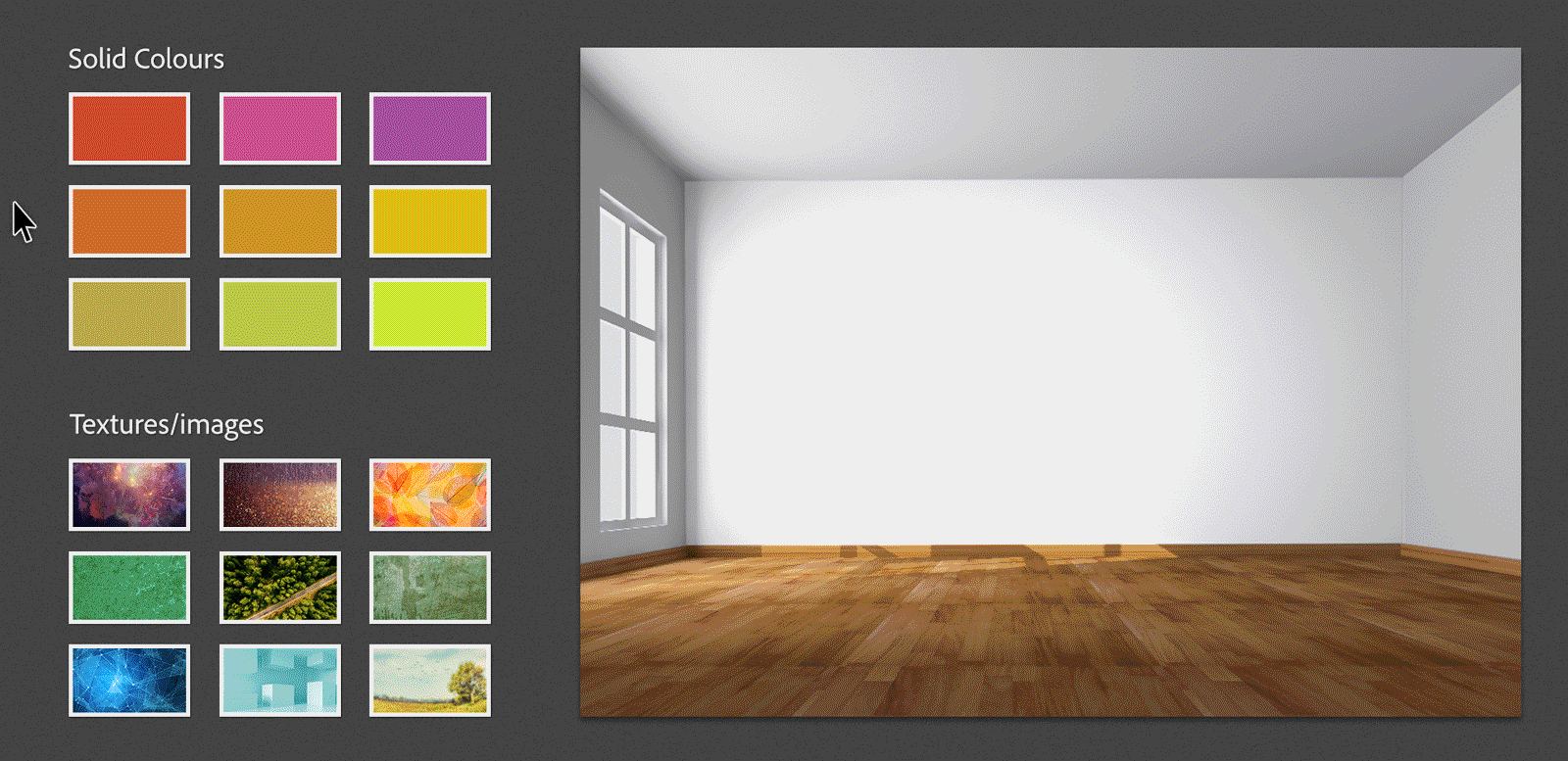 Ahora que ha intentado trabajar con objetos con varios estados en Adobe Captivate, vamos a crear un interesante proyecto de visualización de color. En este proyecto, los usuarios pueden comprobar el aspecto de la pared con diferentes colores y texturas.