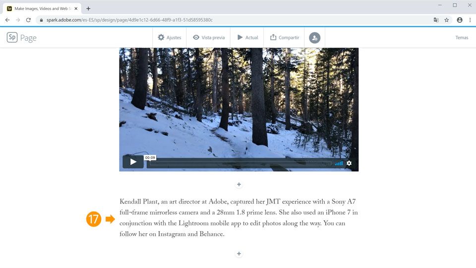 ¡Ya está! Ahora es tu turno: haz una historia web con Spark. Descarga los recursos o utiliza los tuyos propios y comparte tu imagen en Facebook, Twitter e Instagram con #MadewithSpark para recibir comentarios y conectar con otras mentes creativas.