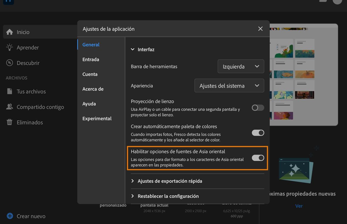 Active Habilitar opciones de texto de Asia Oriental para activar los caracteres de Asia Oriental.