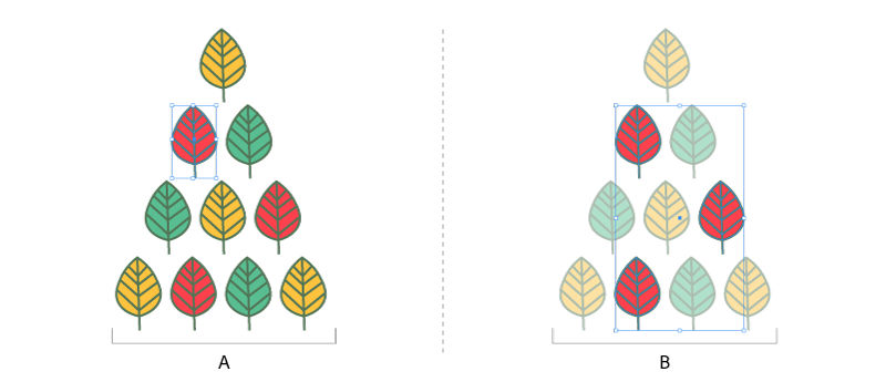 A. Se ha seleccionado uno de los objetos B. Se seleccionan todos los objetos con el mismo color de relleno