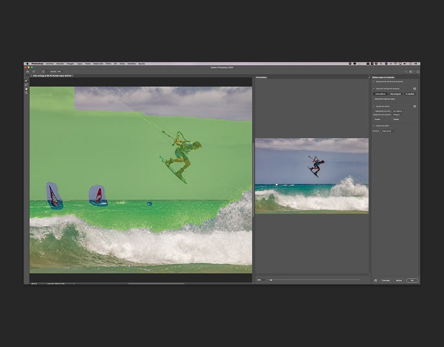 Ve a Editar > Relleno según el contenido y pulsa Aceptar. Enseguida verás que el objeto se ha eliminado de la imagen.
