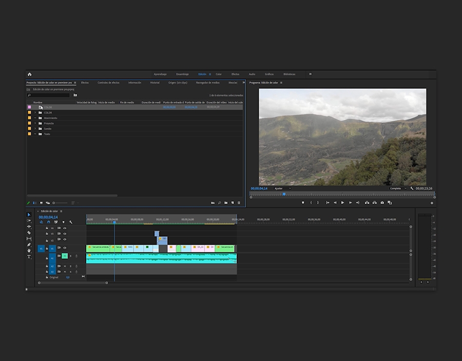 Dirígete al panel Lumetri Color (Ve a Ventana > Lumetri Color si aún no está disponible en la parte derecha de la pantalla.) A continuación, dirígete al panel Efectos y busca “Lumetri Color”. Luego, arrastra y suelta este efecto sobre la capa de ajuste.