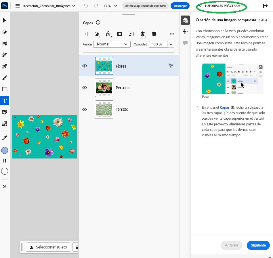 Un tutorial práctico ofrece a las personas usuarias instrucciones paso a paso para crear experiencias en distintas aplicaciones de Adobe.