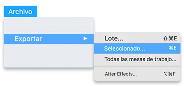 En general, los activos más comunes son las imágenes de mapa de bits, los iconos y los patrones de fondo que puede exportar en estos formatos: PNG, SVG, PDF y JPG.