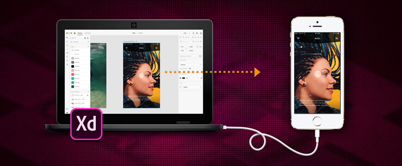 - Conecte su dispositivo móvil mediante USB a su ordenador que ejecute XD, edite sus diseños y prototipos en el escritorio, y previsualícelos en tiempo real en dispositivos móviles conectados. Para obtener más información, consulte Obtener una vista previa de prototipos en tiempo real en dispositivos móviles.