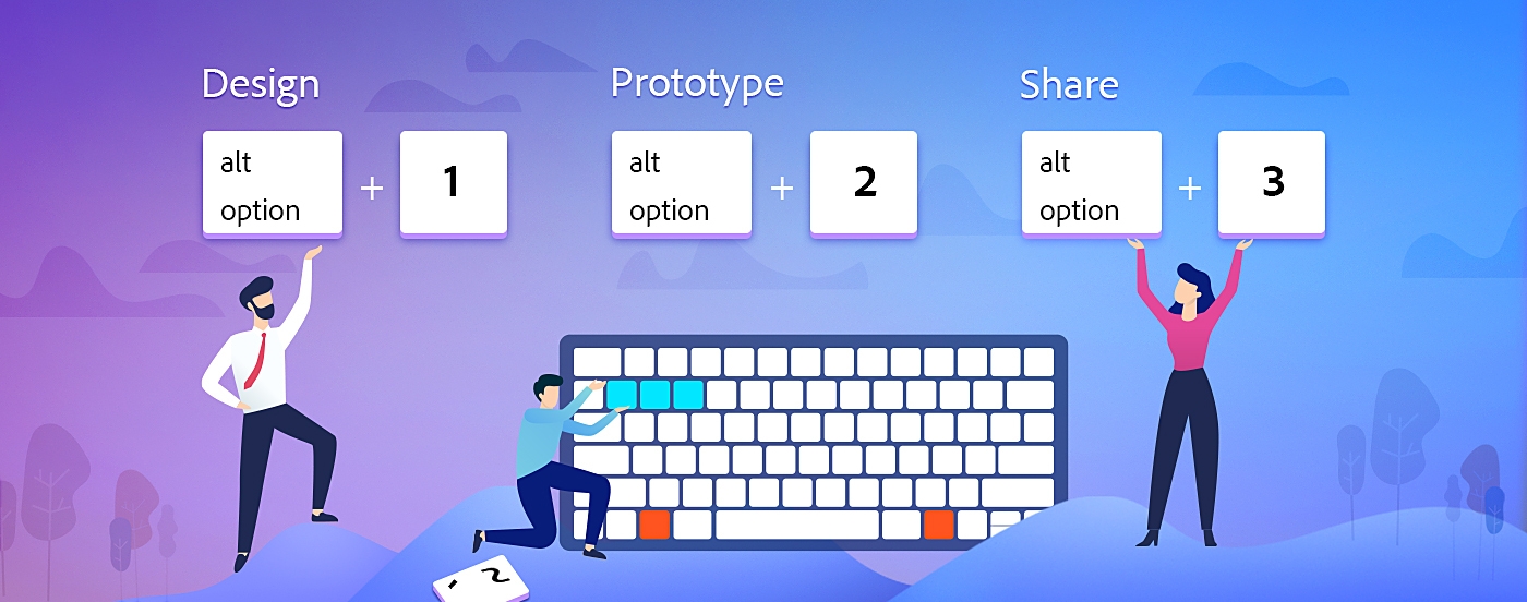 Use todos los nuevos accesos directos al teclado para cambiar rápidamente entre el modo diseño, prototipo y compartir.
