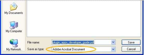 Varmista, että tiedostotyypiksi on valittu Adobe Acrobat -dokumentti ja tallenna tiedosto.