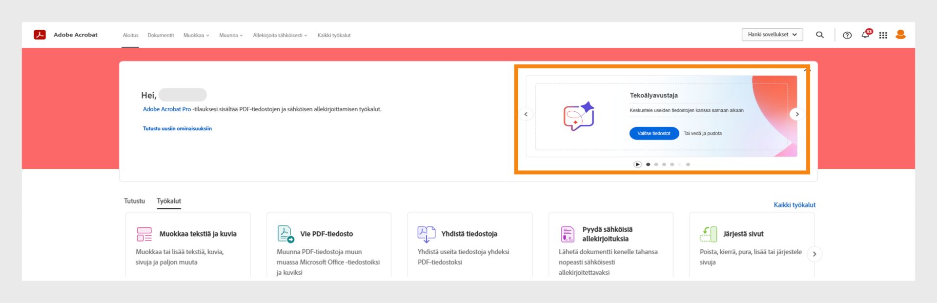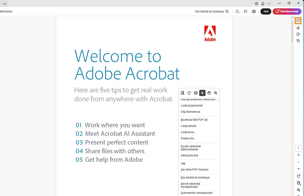 - Tutustu generatiivisiin tekoälyominaisuuksiin Acrobatissa
