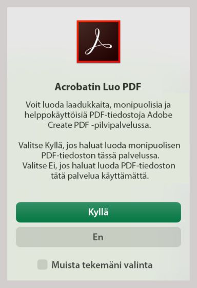 Valitse Acrobat > Muunna Adobe PDF:ksi.