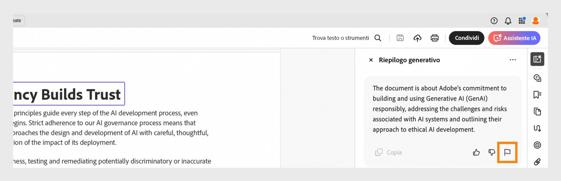 Voit reagoida generatiivisten tekoälyominaisuuksien luomaan sisältöön ja ilmoittaa, oletko tyytyväinen tuotokseen.Voit valita, haluatko tykätä vastauksesta vai et sen mukaan, pidätkö sitä hyödyllisenä.