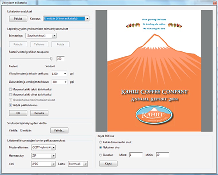 Valitse Acrobatissa Kaikki työkalut > Painotyö > Tasoituksen esikatselu.