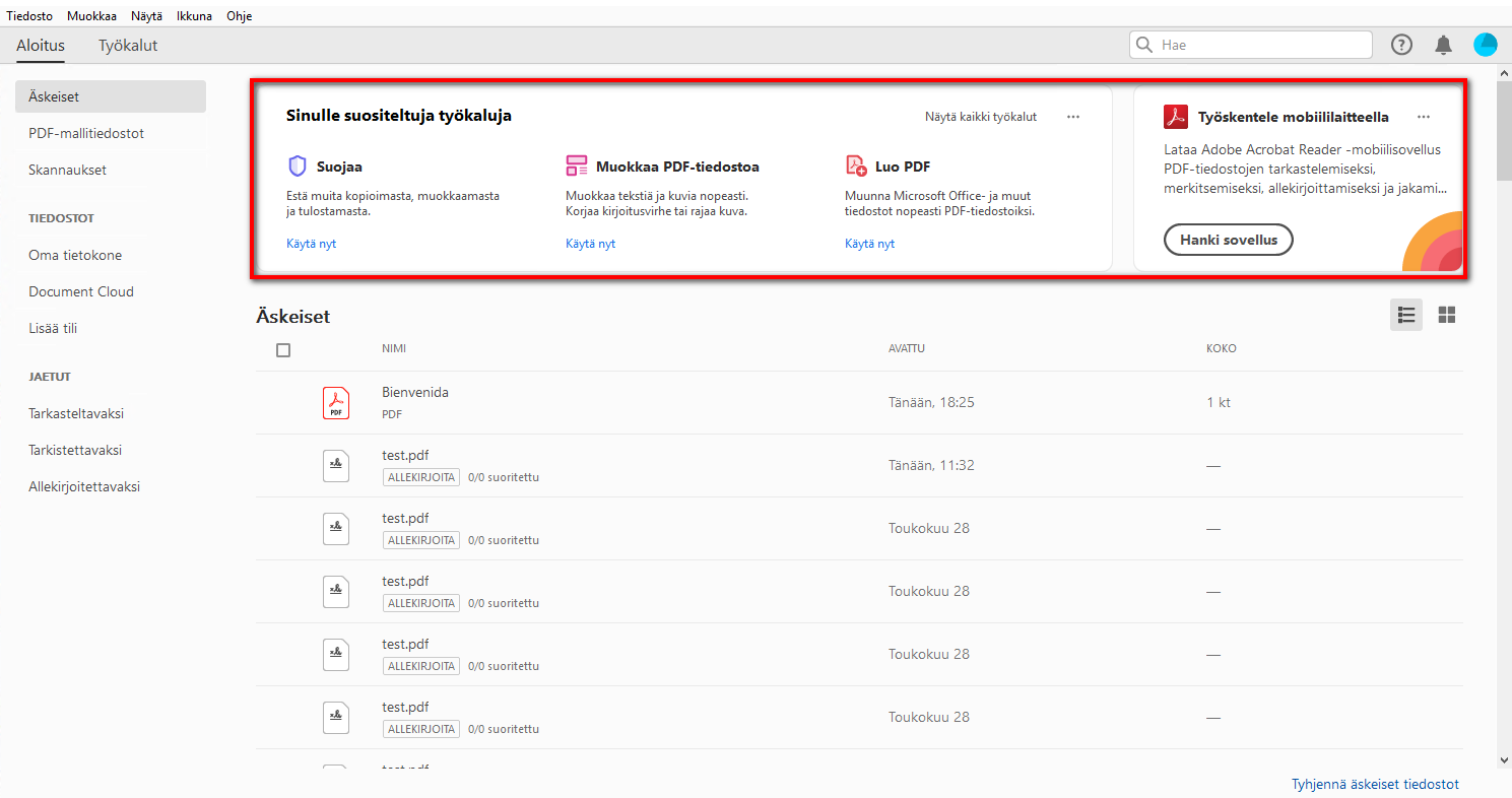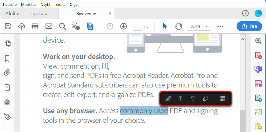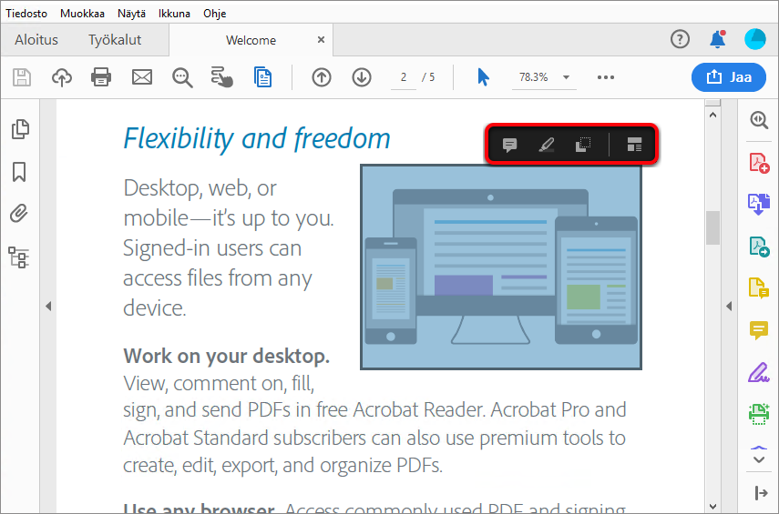 Adobe Acrobatin tietokoneversion uudet ominaisuudet