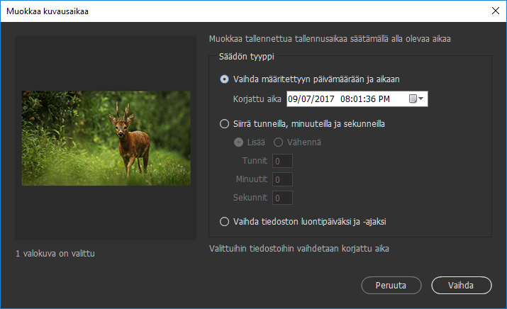 - Esikatsele kuvia ja muokkaa kuvausaikaa
