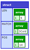 • If  returnsubexpressions = "True": a structure that contains two arrays,  len  and pos. The array elements are as follows: