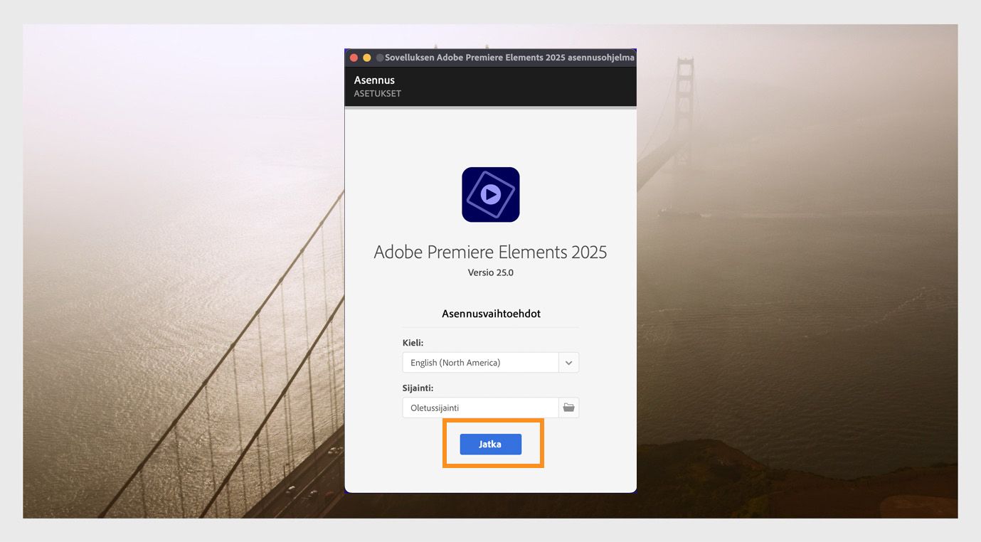 Valitse Adobe Premiere Elements <year> ‑valintaikkunasta Asenna Adobe Premiere Elements <year>.