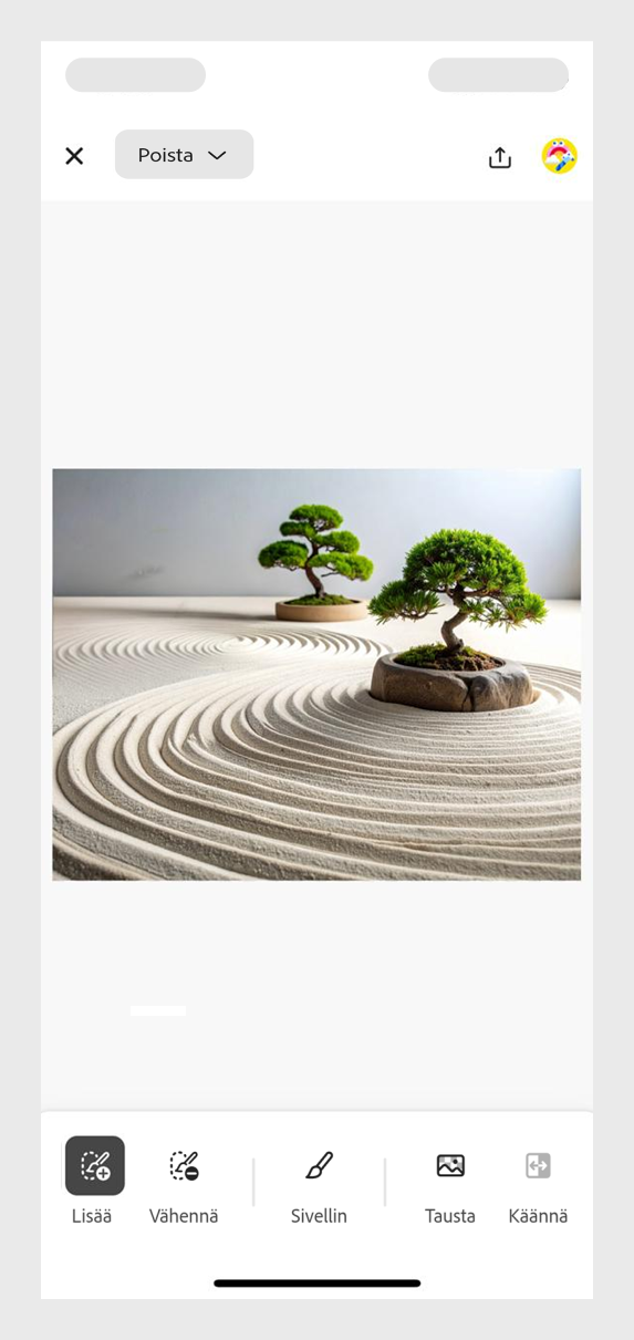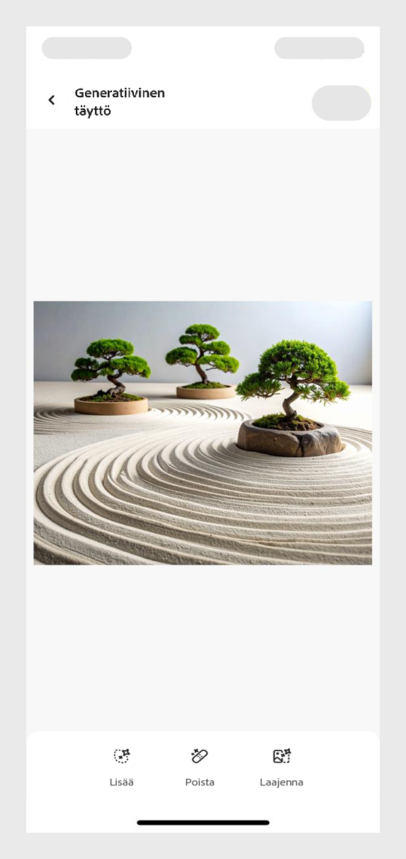 Jatka valitun kuvan käsittelyä valitsemalla Säilytä tai hylkää generoidut variaatiot valitsemalla Peruuta.