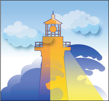 Sekoitettu Käyttää Adobe Illustratorin menetelmää, joka häivyttää objektin reunat peittävistä läpinäkyviksi.