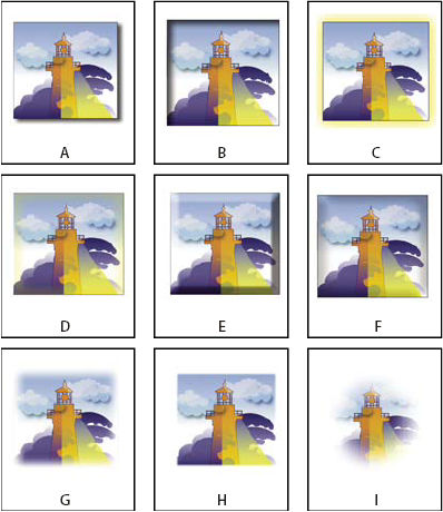 Pehmennys suuntaan -tehoste pehmentää objektin reunoja häivyttämällä reunat läpinäkyviksi määritetyissä suunnissa. Häivytys voi esimerkiksi vaikuttaa objektin ylä- ja alareunaan mutta ei vasempaan eikä oikeaan reunaan.