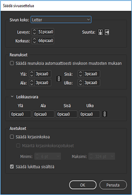 Määritä Säädä sivuasettelua ‑valintaikkunassa seuraavat asetukset: