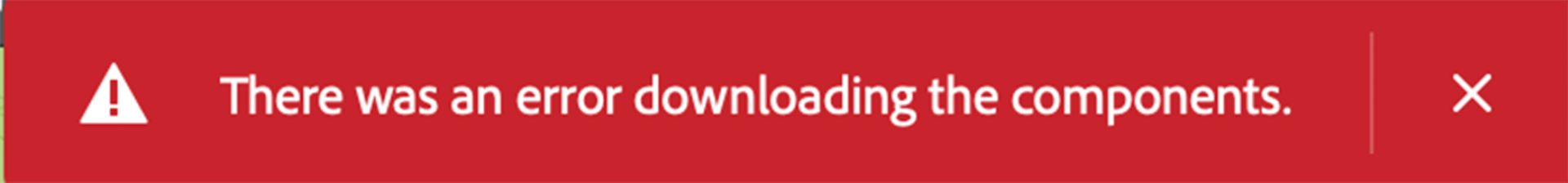 Kun komponentteja ladattiin Adoben palvelimelta, saattoi tapahtua virhe.