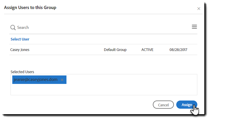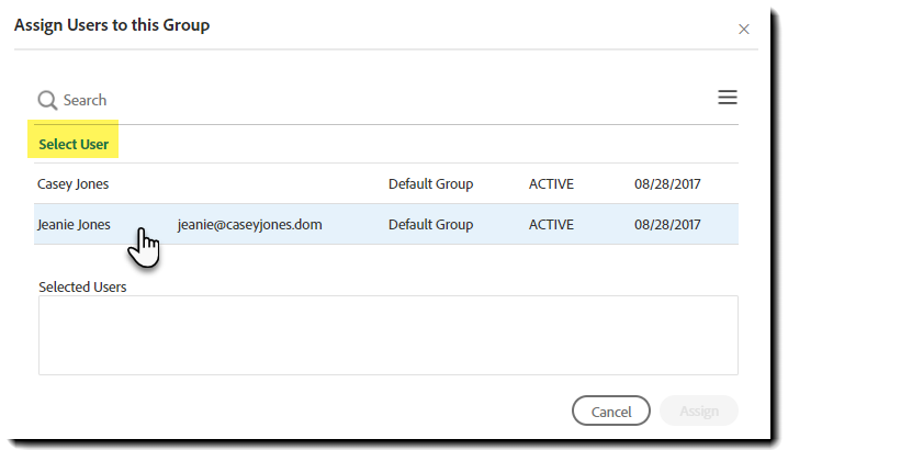 Kun kaikki käyttäjät on valittu, napsauta Osoita-painiketta.