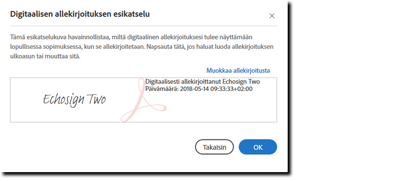Näyttöön tulee allekirjoituksen esikatselukuva.
