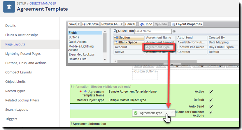Tämä käyttöliittymä kohdistuu muokattuun objektiin Agreement_Document_Storage_Type__c