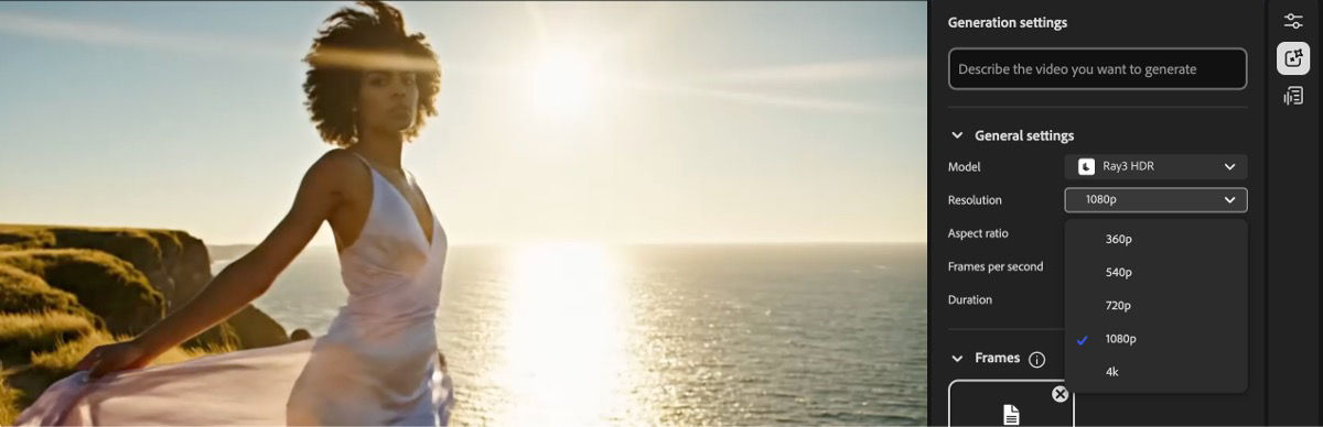 Generate videos in the Firefly video editor using Luma AI models, such as Ray2, Ray3, and Ray3 HDR, which offer different performance and quality characteristics. Each model provides unique capabilities for transforming your prompts and images into video content.
