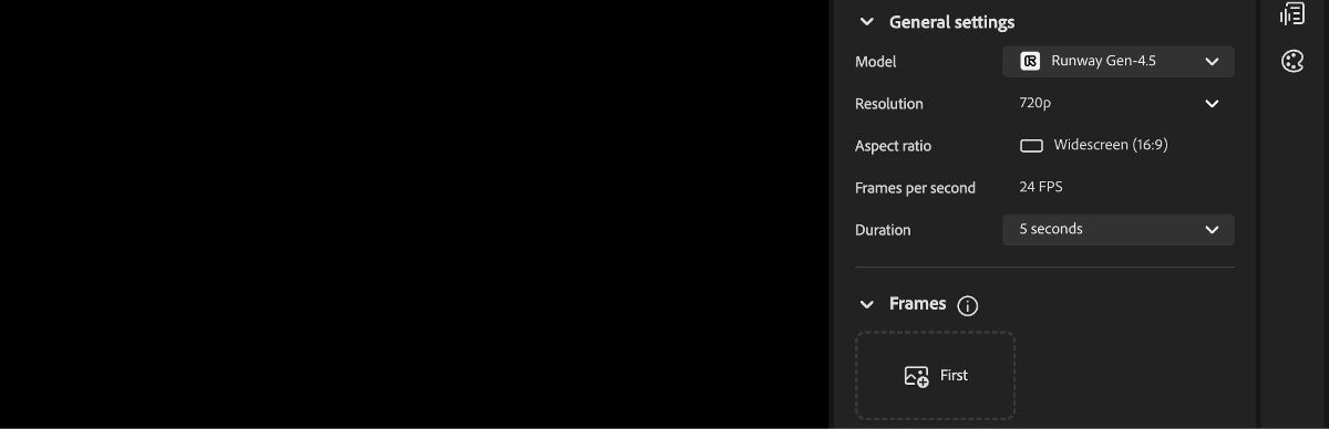 If you want to add a first frame for the video generation, under the Frame section, select First and upload the image.