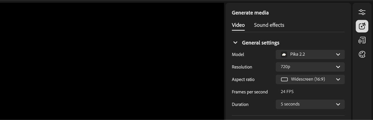 Select the Generate media icon in the right panel, then select the Video panel if needed.