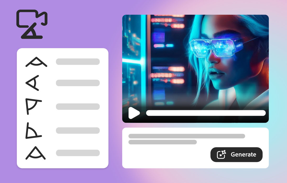 Use Firefly's lightweight timeline editor to trim and arrange clips, add titles, add audio, and generate new scenes from any frame.