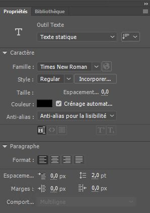Remarque : Les polices Adobe Fonts ne sont pas disponibles pour le texte statique.