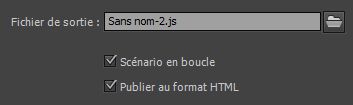 Ces fichiers sont copiés au même emplacement que celui du fichier FLA par défaut. Vous pouvez modifier cet emplacement en spécifiant le chemin d’accès de la sortie dans la boîte de dialogue Paramètres de publication (Fichier > Paramètres de publication).