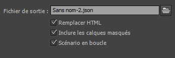 Permet d’indiquer si l’enveloppe HTML doit ou non être remplacée lors de la publication de votre projet WebGL. Vous pouvez désélectionner cette option si vous avez apporté des modifications externes au fichier HTML publié et souhaitez les conserver lors de la mise à jour de toute modification apportée à l’animation ou à des éléments d’Animate.