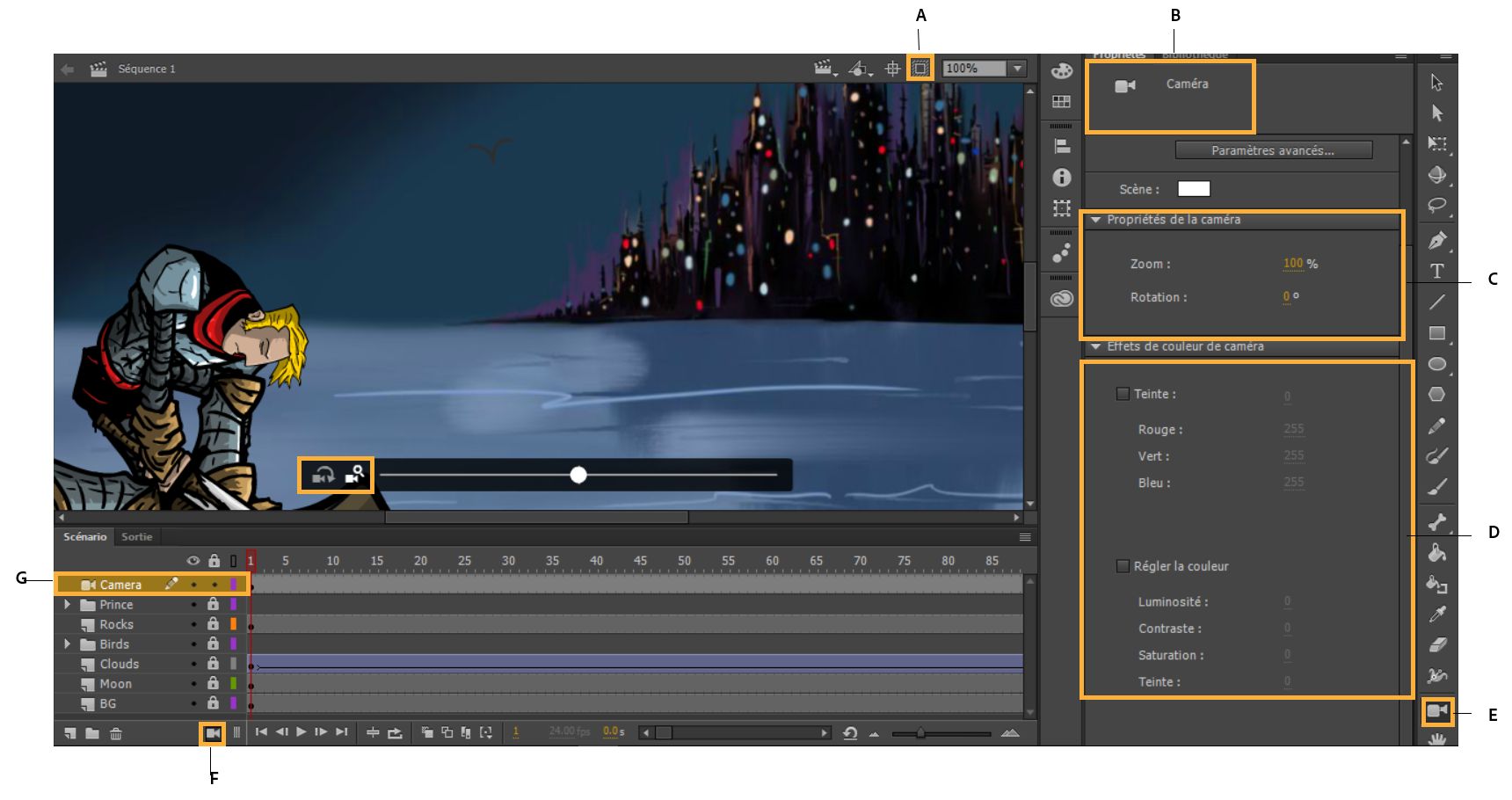 . En vue de caméra et de scène, vous pouvez afficher le contenu dans les limites de la caméra.