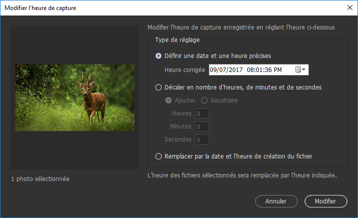 - Aperçu des images et modification de l’heure de capture