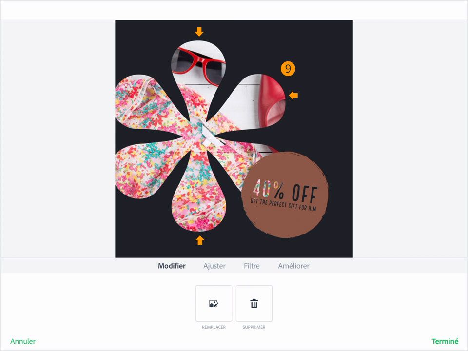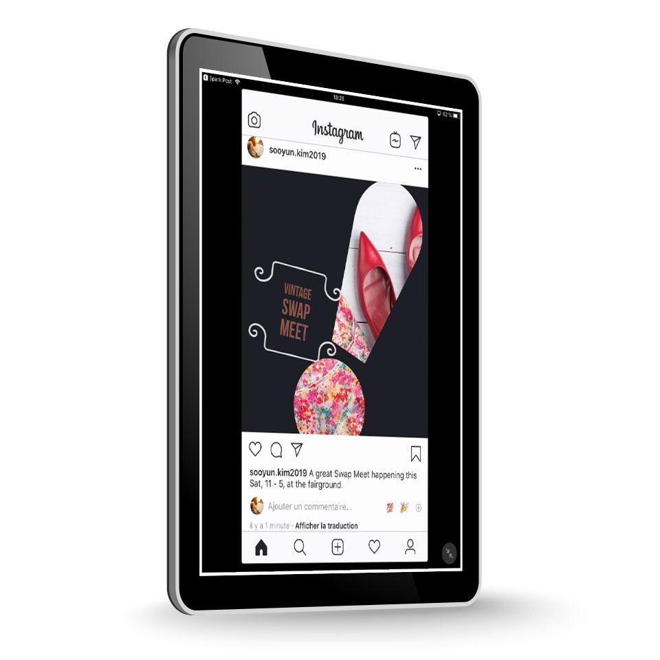 Et voilà, le tour est joué ! À votre tour de créer un message avec Spark. Utilisez vos propres ressources ou celles proposées en téléchargement, puis partagez votre image sur Facebook, Twitter et Instagram avec le hashtag #MadewithSpark pour recueillir des commentaires et échanger avec d'autres créatifs.