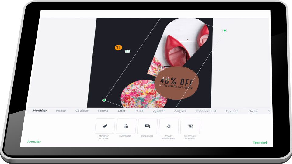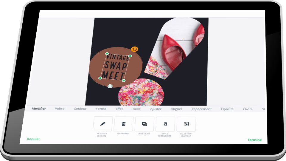 16. Appuyez sur le texte pour le redimensionner et le repositionner.
