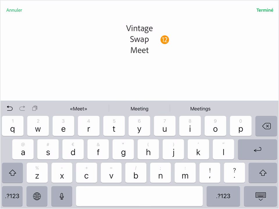 12. Pour modifier le texte, appuyez deux fois dessus et saisissez le nouveau texte. Appuyez sur Terminé.