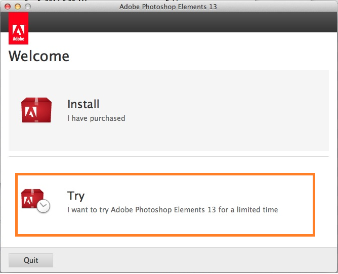 Consultez la page de téléchargement de la version d’essai de Photoshop Elements, ou la page de téléchargement de la version d’essai d’Adobe Premiere Elements.